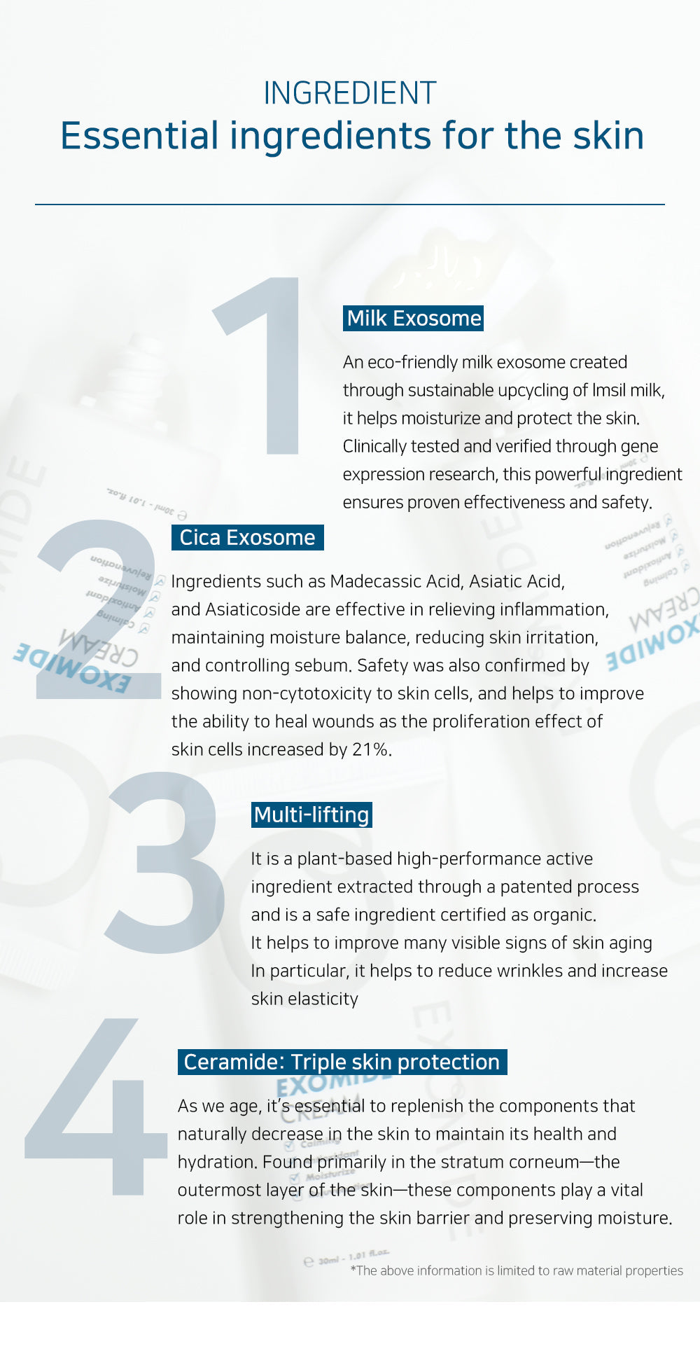 EXOMIDE Cream został opracowany, aby zapewnić optymalną regenerację i rewitalizację skóry oraz jej bariery ochronnej. Widoczne zmiany skórne spowodowane procesem starzenia zostają naprawione. Idealny dla utrzymania zdrowych funkcji ochronnych skóry. Odpowiedni dla skóry wrażliwej.